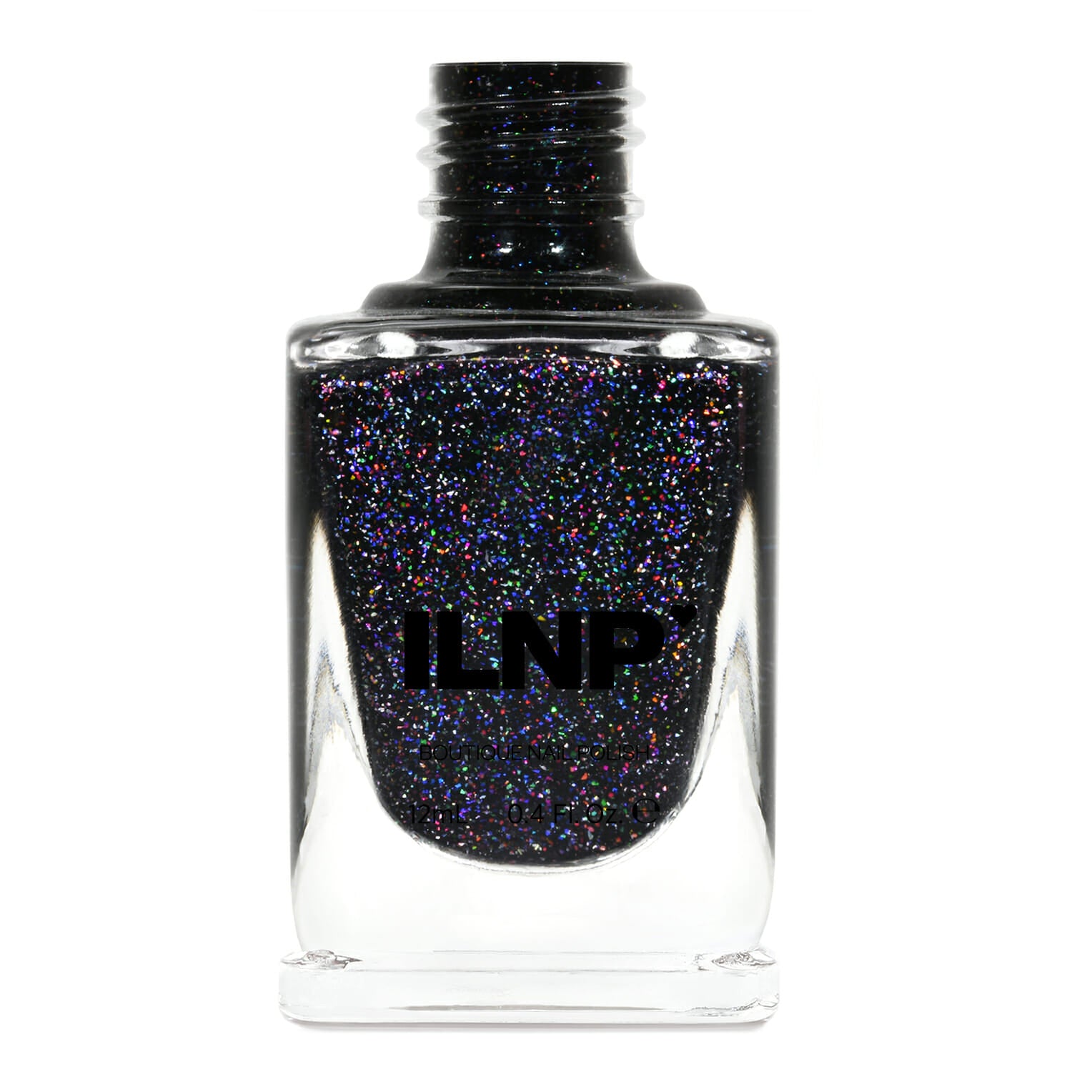 Precisely formulated to optimize depth, sparkle, and holographic payoff while maintaining an intense, jet black finish, Party Bus is bursting with holographic micro-flakes and shimmering iridescent flakes. Watch as glimmering hues of red, green, and blue dance across your nails to their own private party!