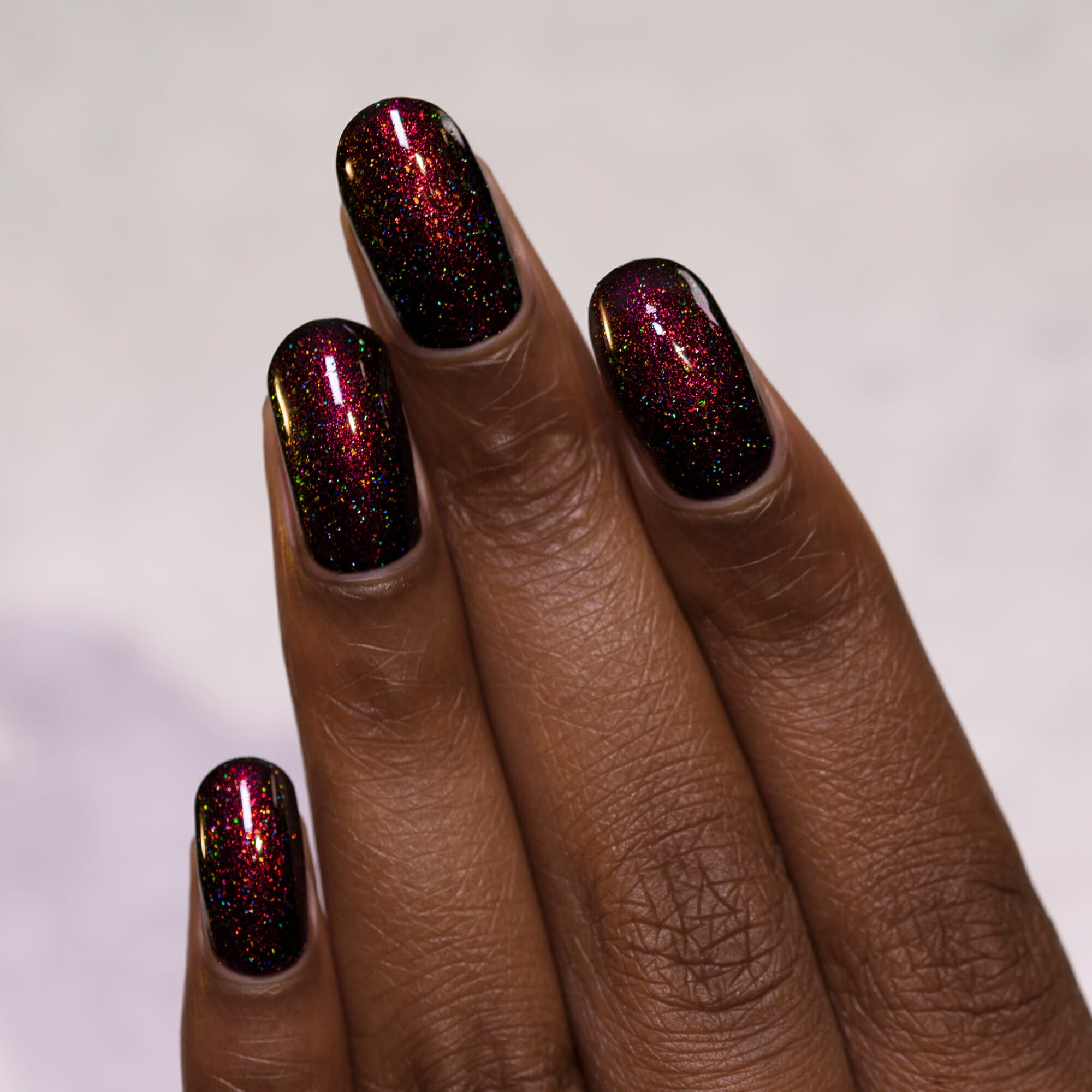 Underground showcases a stunning combination of holographic splendor and glowing orange to red to green color shifting flakes that contrast the deep black base for a jaw-dropping finish!