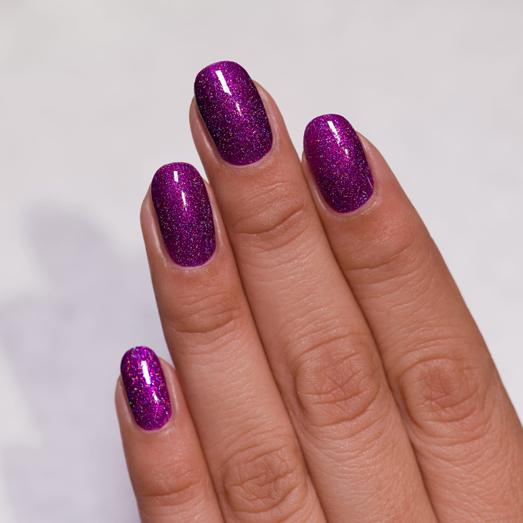 Zoe is a catch! With sparkling personality, lush looks, and vivid color, this bold and beautiful raspberry-purple holographic nail polish just pops. Incredibly deep, remarkably radiant, and utterly divine. It’s time to shine.
