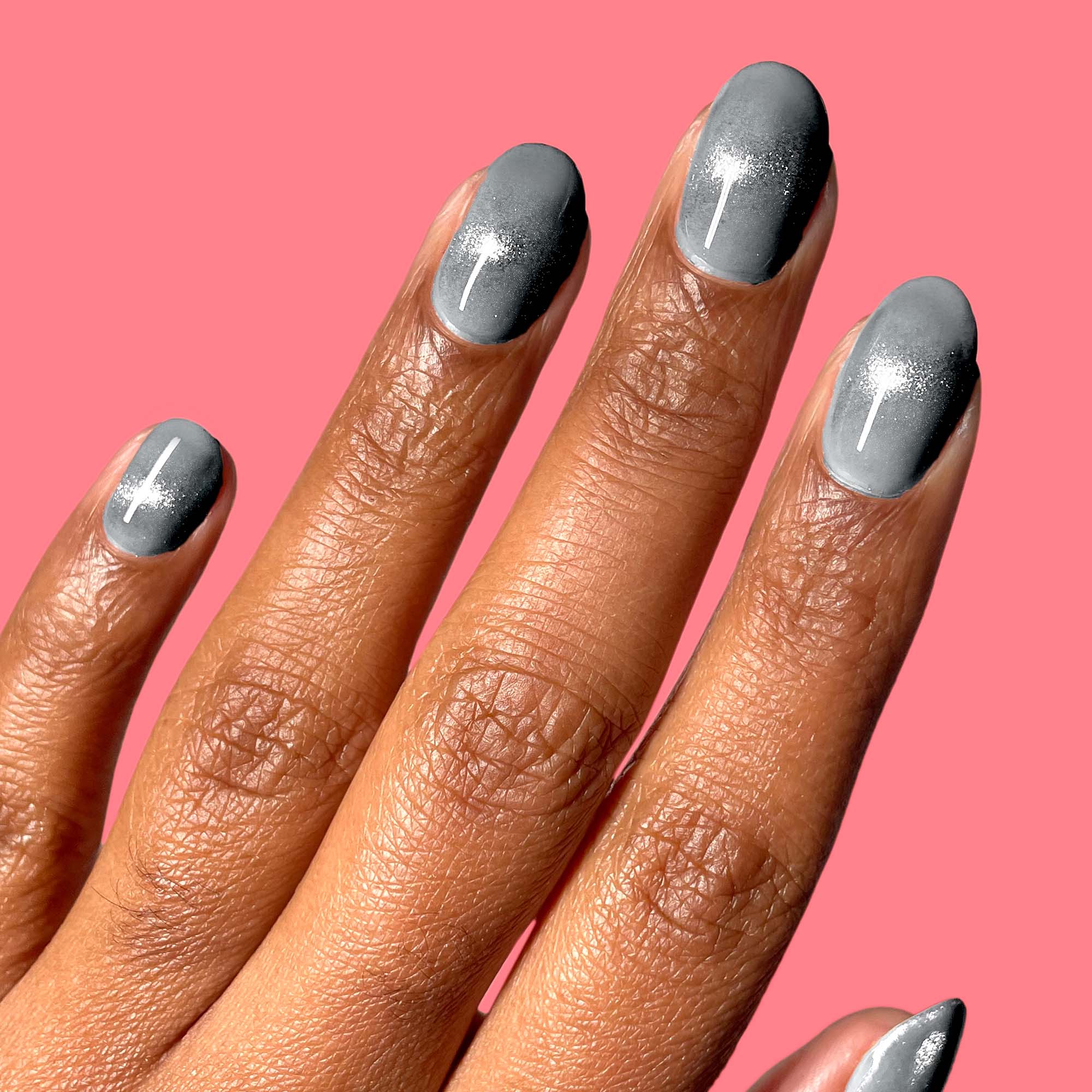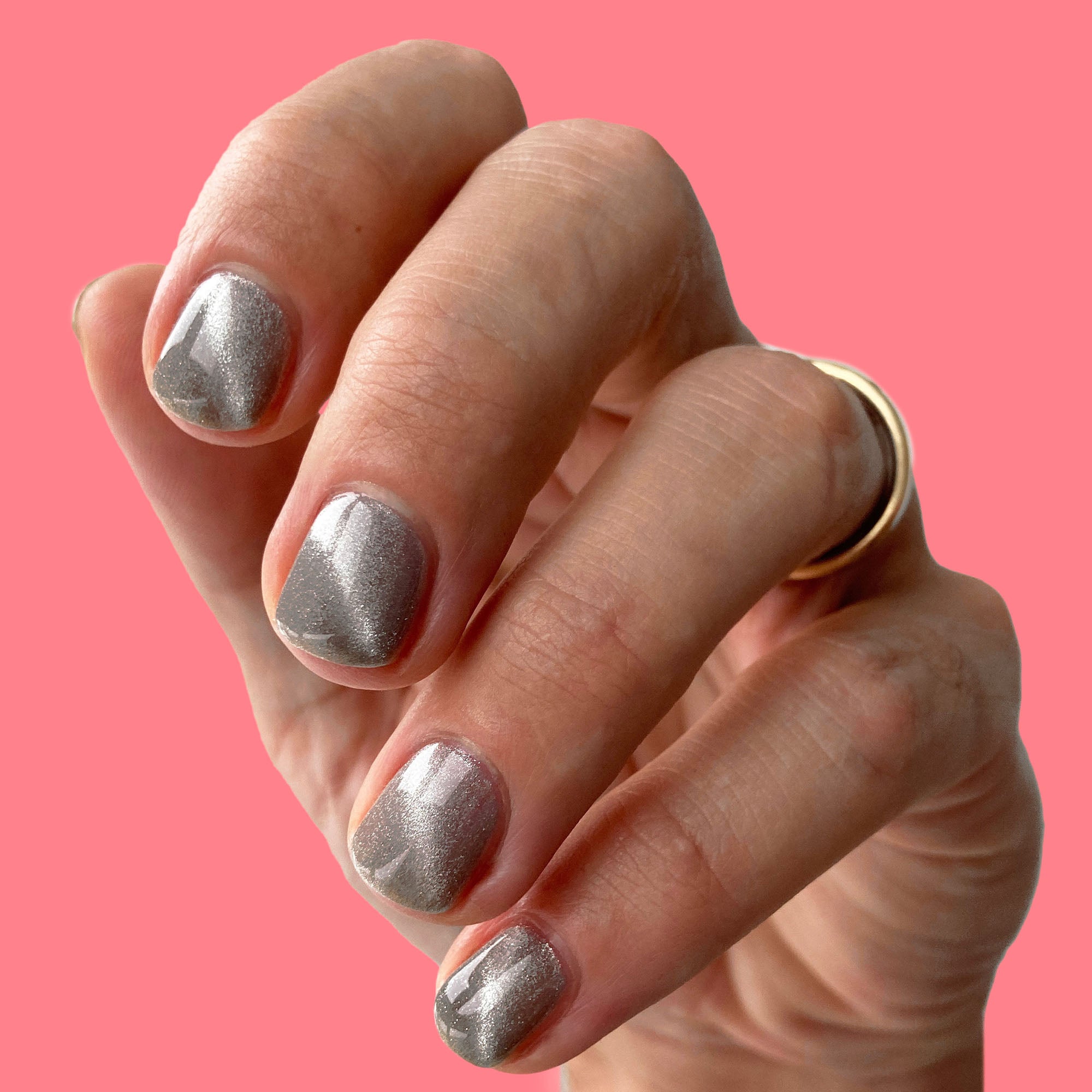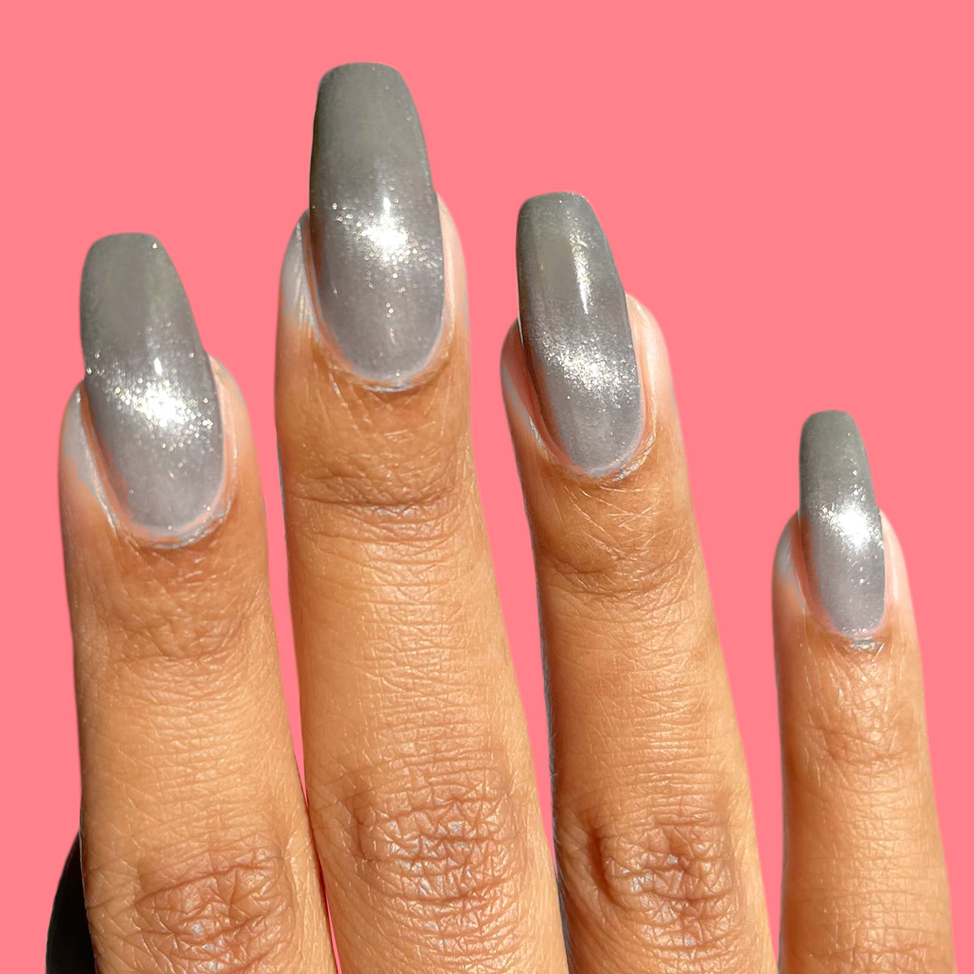Chemistry is a gray nail polish with silver magnetic pigment. Use our magnetic wand while the polish is wet to activate the magnetic particles creating captivating 3D nail art designs.