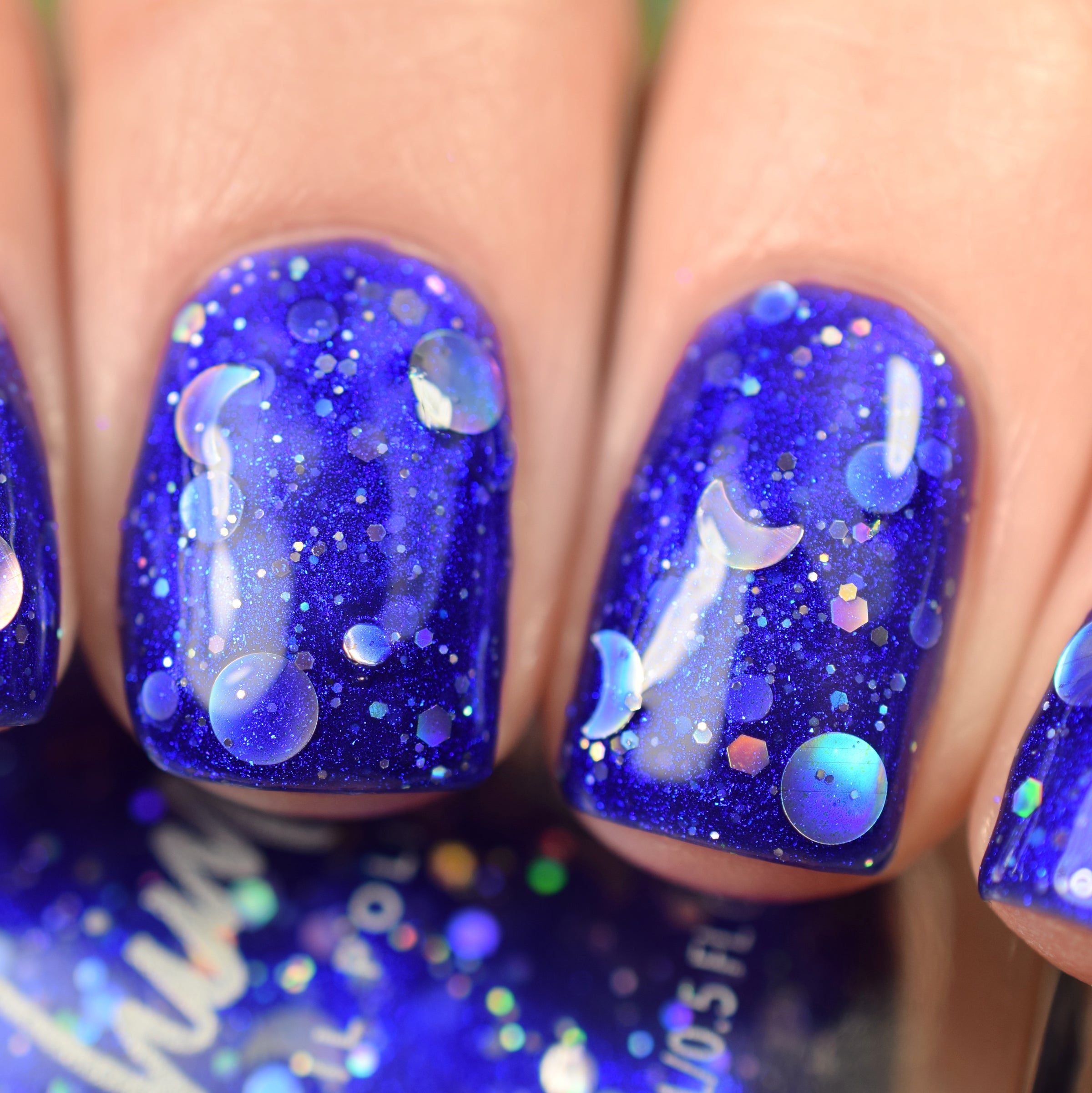 ~~~For ease of application, the LARGE "full moon" circle glitters are only in the included glitter bag, and not in the polish itself. Some photos shown include extra crescent moon and full moon circle glitters hand applied. ~~~