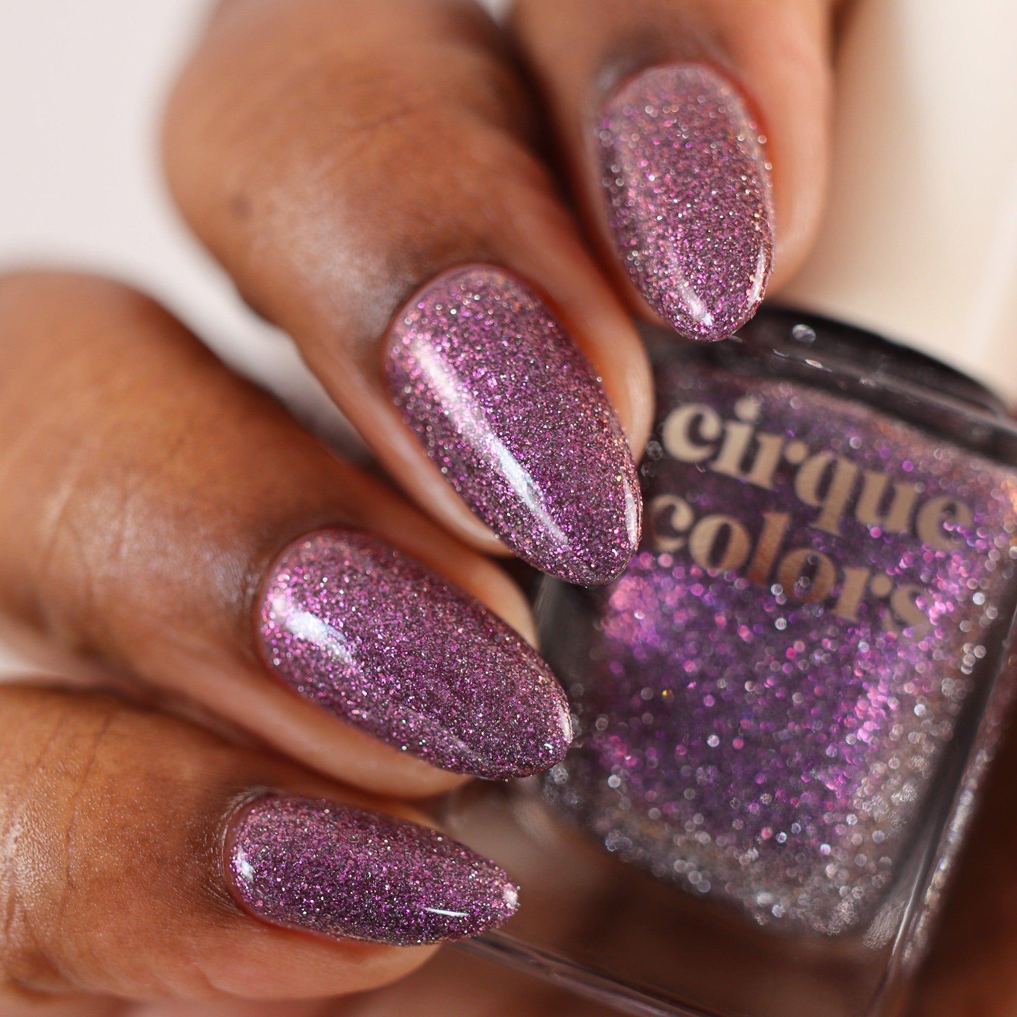 It’s soft at first glance, hazy and mysterious, but the shimmer gives it away...this isn’t just pretty, it’s potent. The color shift feels like petals in shadow, catching the last bit of sunset before night takes over. Under the flash, the silver glitter makes it look almost too enchanting to be safe.