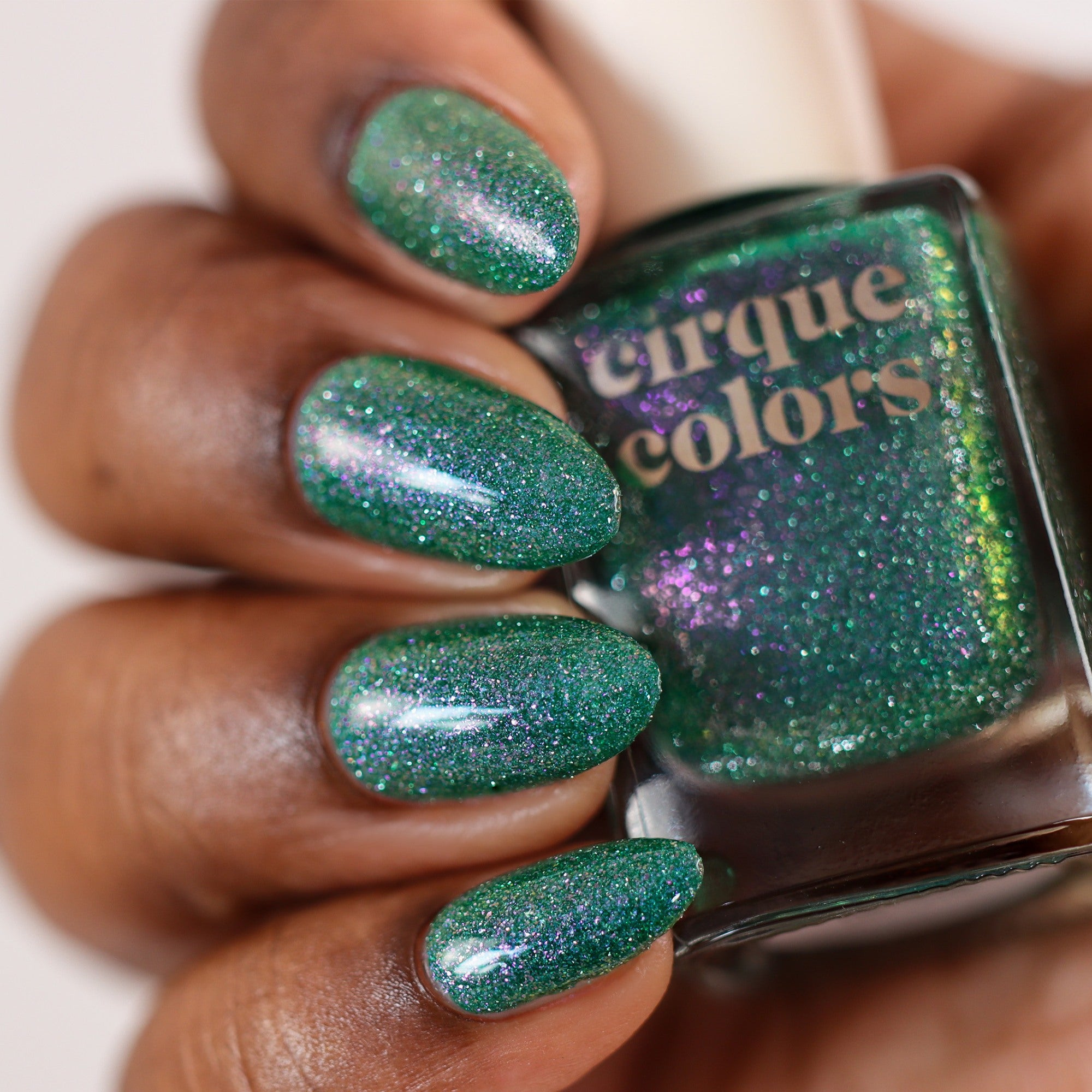 Hemlock is a cool toned green nail polish with aqua blue shimmer and dazzling reflective sparks. Our Spotlight Shimmers™ combine glimmering shimmer pigments and flash reflective glitters which illuminate your nails with direct lighting.