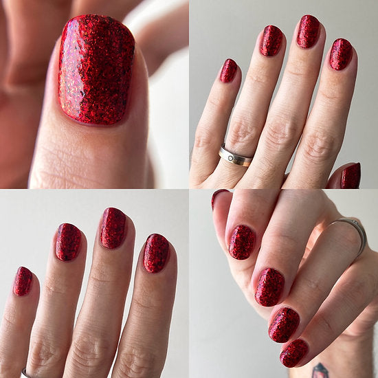 Note: This is a very pigmented red polish, to ensure no staining occurs please wear a milky type base coat.