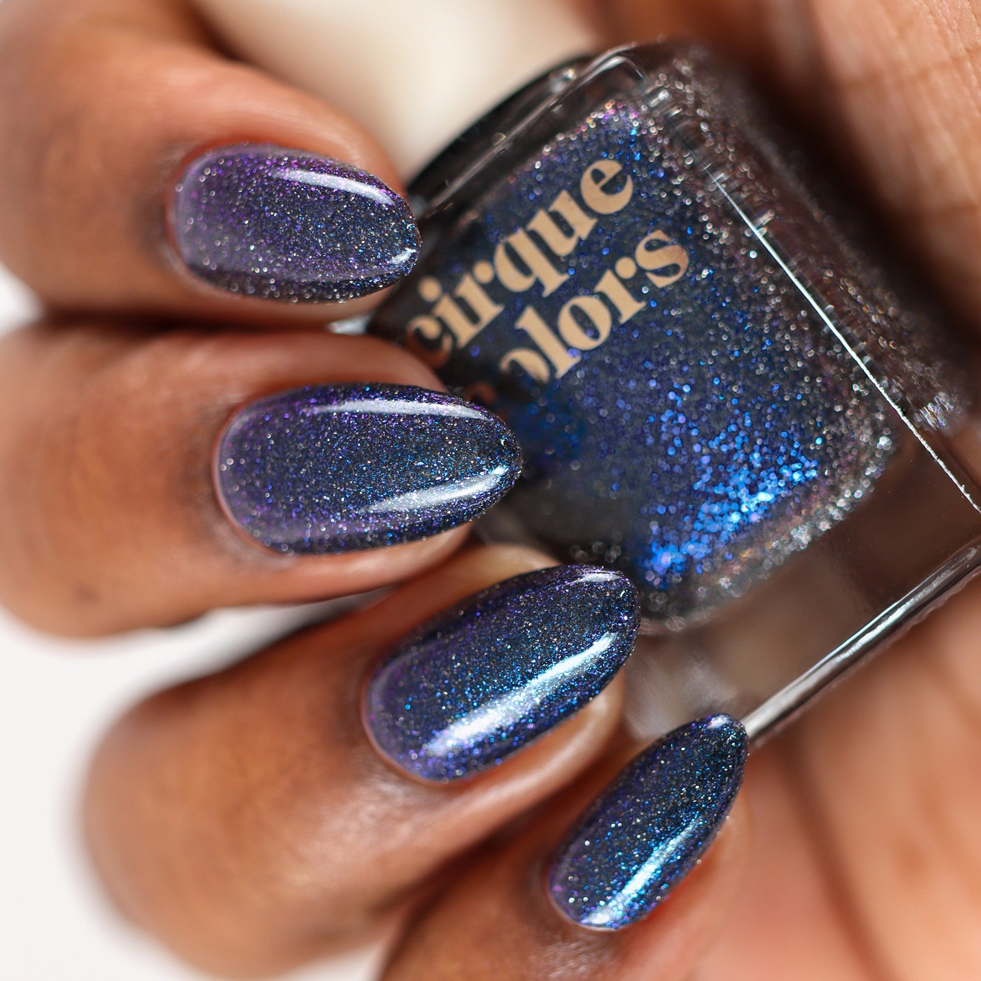 Nightshade is a black nail polish with blue-violet color-shifting shimmer and dazzling reflective sparks. Our Spotlight Shimmers™ combine glimmering shimmer pigments and flash reflective glitters which illuminate your nails with direct lighting.