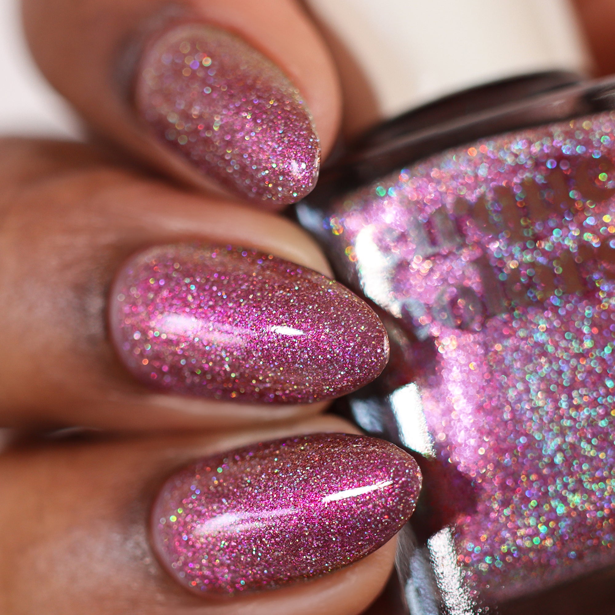 Holographic and shimmer polishes look best under direct light, such as sunlight or strong indoor bulbs, to bring out the prismatic rainbow effect.